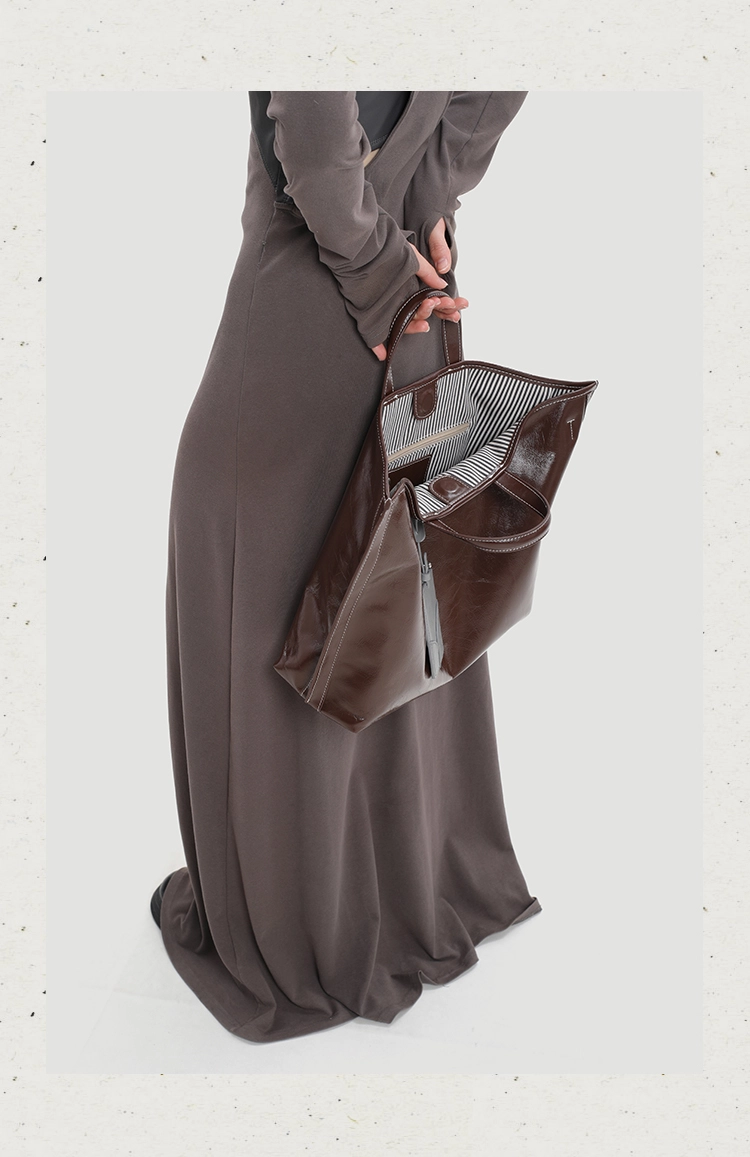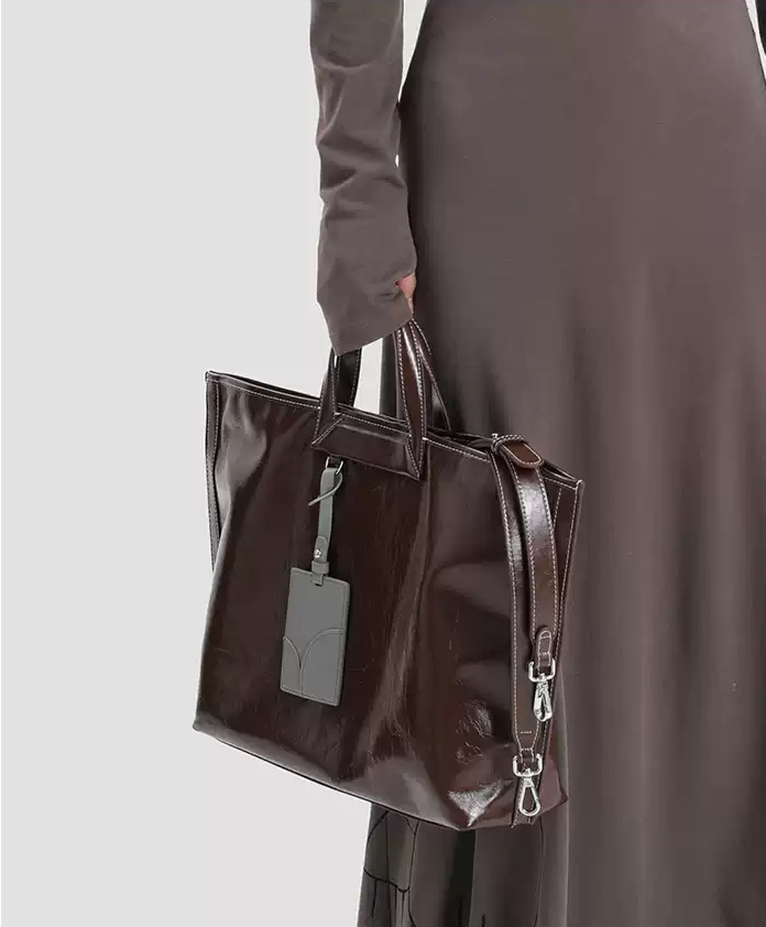 With generous capacity, soft texture, and a glossy leather sheen, this tote is designed to handle your daily needs while staying effortlessly elegant.