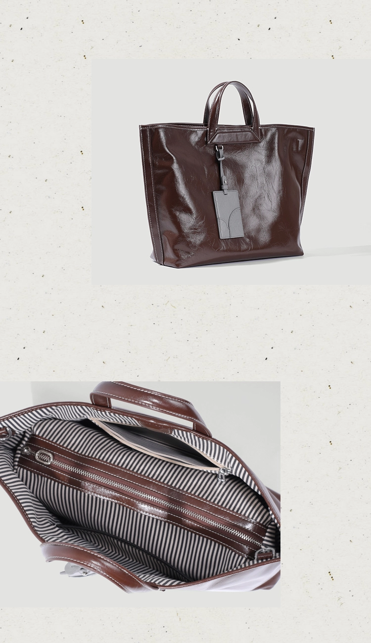 Designed for modern women who need both style and practicality, this Genuine Leather Glossy Large Tote Bag blends minimalism with a touch of luxury. Made from high-quality cowhide leather, the bag features a naturally glossy, polished surface that gives it a refined, high-end finish without compromising softness and flexibility.